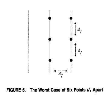 图5:最坏情况下六个相隔均为d1的点