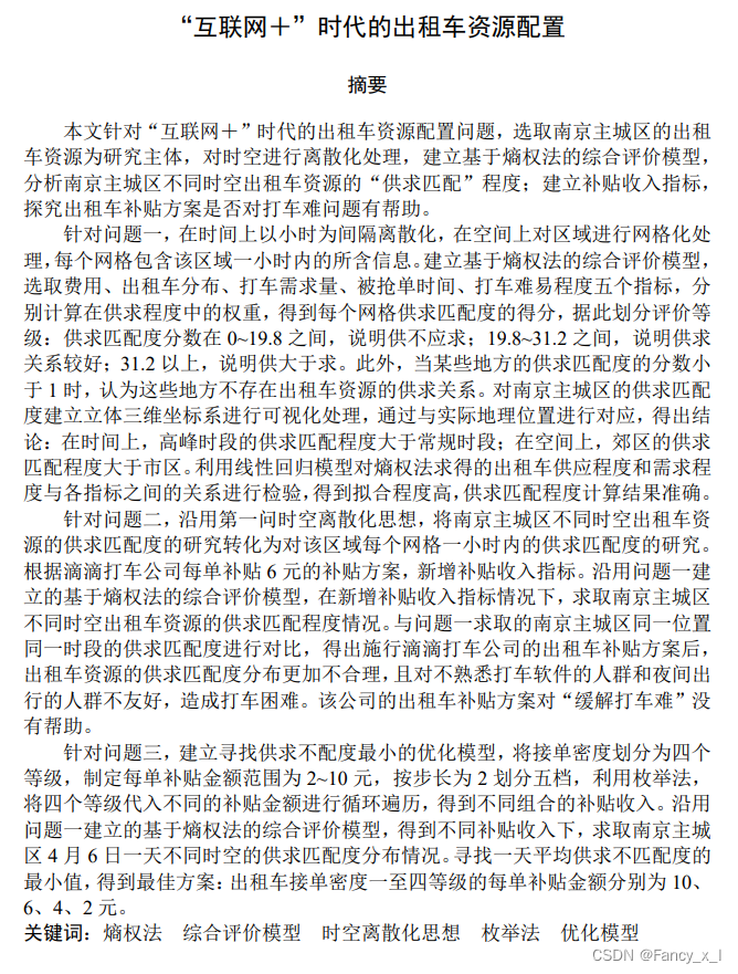 以上就是称心小白菜最近收集整理的关于全国大学生数学建模2015年B题“互联网+”时代的出租车资源配置的全部内容,更多相关全国大学生数学建模2015年B题“互联网+”时代内容请搜索靠谱客的其他文章。