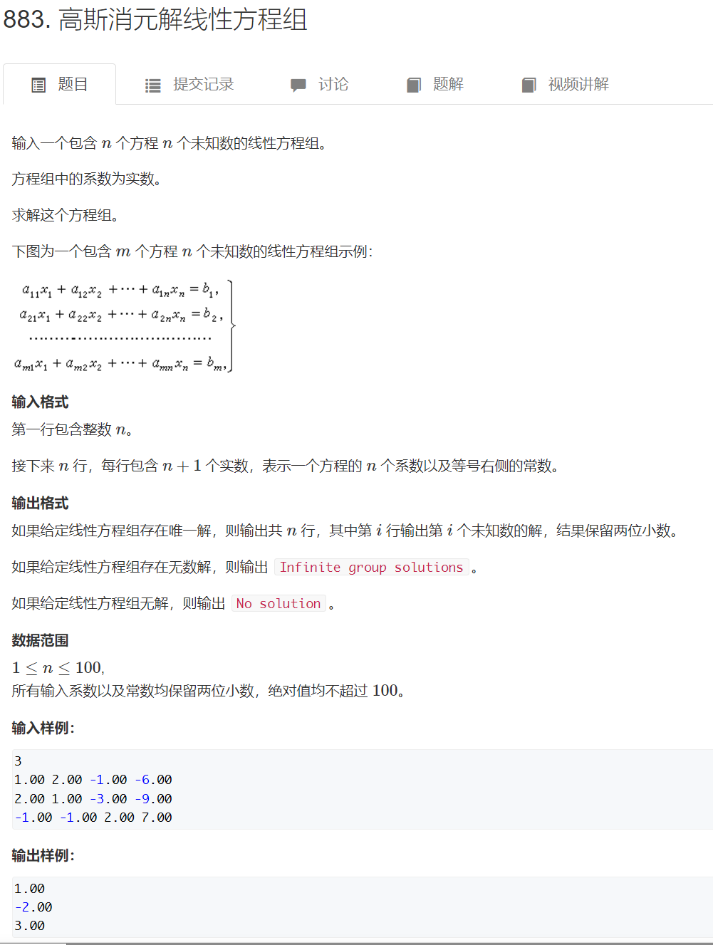 学过线性代数的我们都知道,高斯消元法就是用来求解线性方程组的,对应到代码领域,高斯消元法可以在n^3的时间复杂度内求解n个未知数n个方程的方程组。