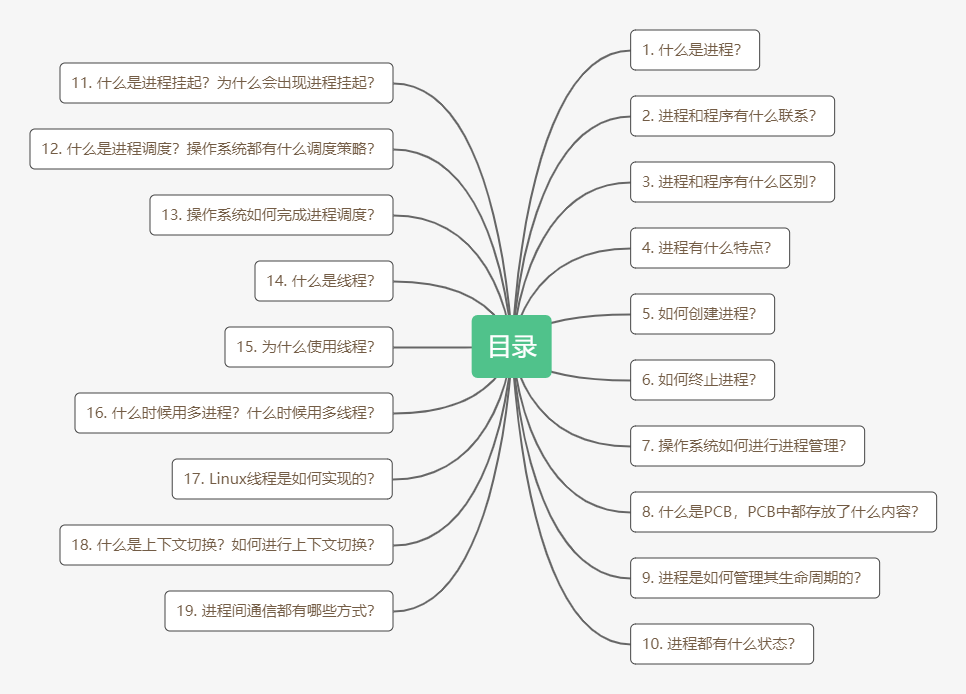 一个进程是某种类型的一个活动,它有程序、输入、输出以及状态。单个处理器可以被若干进程共享,它使用某种调度算法决定何时停止一个进程的工作,并转而为另一个进程提供服务。