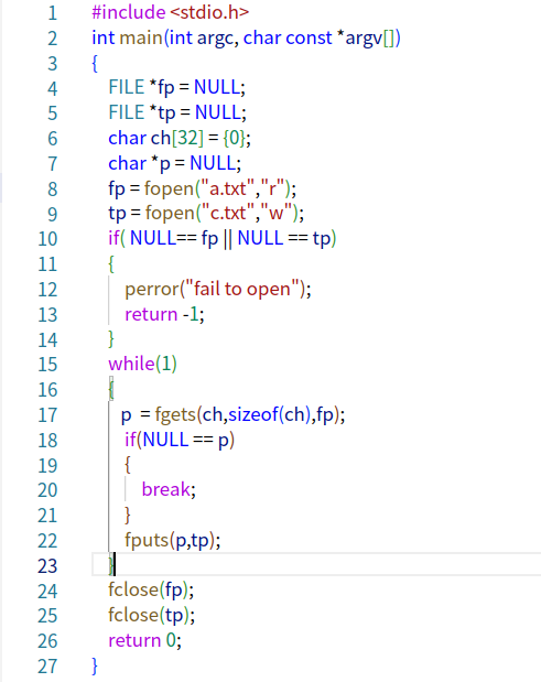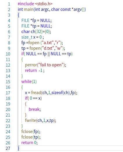 利用fread和fwrite拷贝文件a.txt("r"表示读)