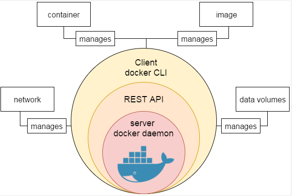 - 中间是REST API,用于指定程序可以用来与守护进程通信的接口