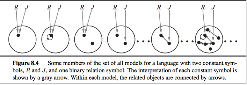 Domain: The domain of a model is the set of objects or domain elements in contains. The domain is required to be nonempty. (every possible world must contain at least one objects)