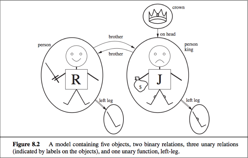 First-order logic assumes that the world consists of objects with certain relations among them that do or do not hold. The formal models are correspondingly more complicated than those for propositional logic.