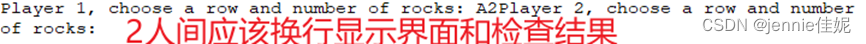 ⑷ 玩家选择有效的输入后,你应该检查获胜者。如果有一个玩家获胜,你应该显示相应的输出来表明该玩家获胜。如果没有胜利者,你的程序应该更新游戏界面中每行石头的数量,重新显示更新的游戏界面,并轮到下一个玩家继续。