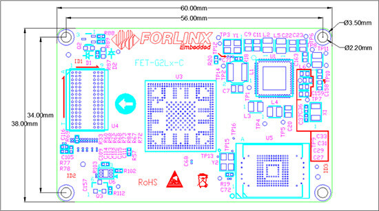 FET-G2LD-C核心板正、反面尺寸图