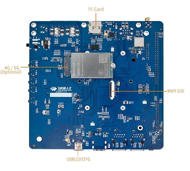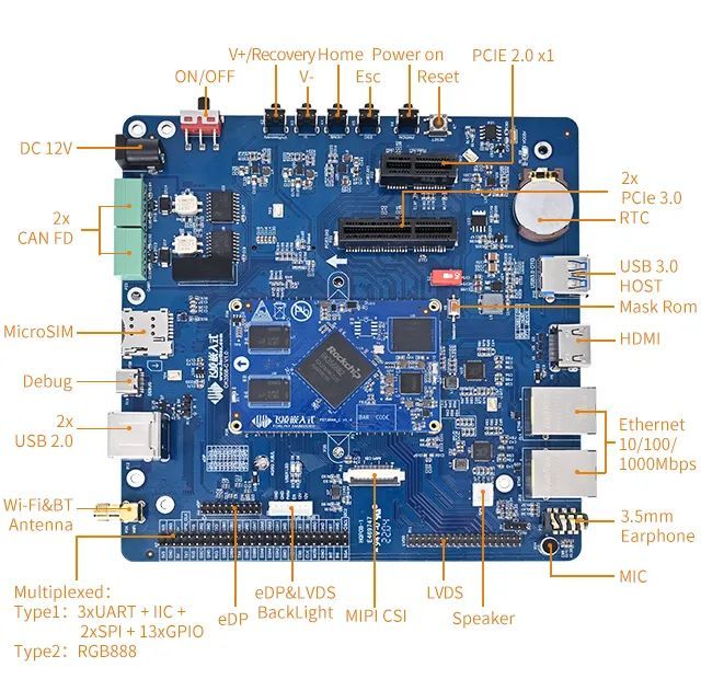 OK3568-C开发平台核心板和底板采用接插件的连接方式,板载外设资源和接口很多。