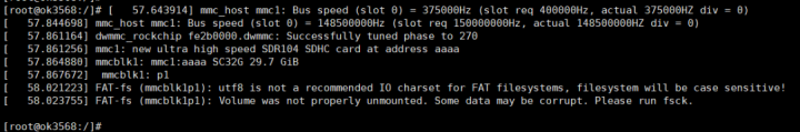 将 TF 卡插入开发板底板上的 TF 卡插槽,终端打印信息如下:
