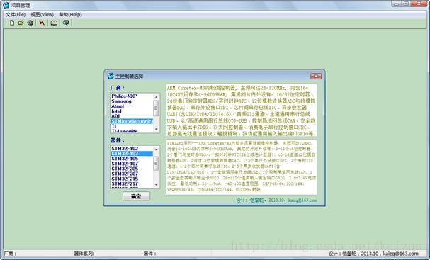 在Windows下运行STM-CortexM3系列微处理器软件架构工具,选择需要的厂商与器件系列,如图4所示。