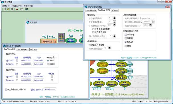 使用可以STM-CortexM3系列微处理器软件架构工具,可以构建针对ARM-Keil通用集成开发环境Real View MDK的项目工程系统,可以构建针对ARM-Keil推出的最小、最简洁、最常用的嵌入式实时操作系统RTX的项目工程系统,也可以产生针对uC/OS-II等嵌入式操作系统的软件体系架构。
