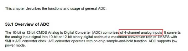 如下图所示,这是 4412 的 datasheet 截图,可以看到 4412 一共有 4 路 ADC 接口。