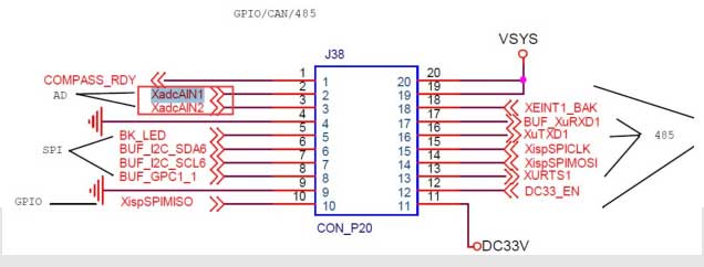 如下图所示,可以看到 ADC1 和 ADC2 引到 J38 端子。
