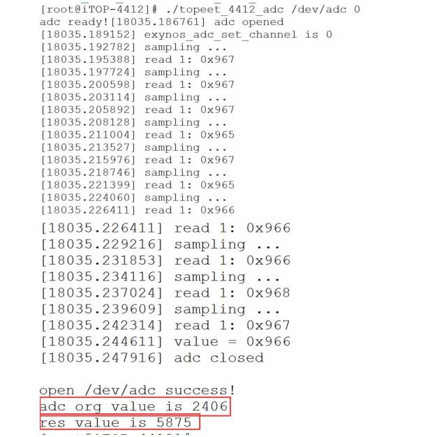 以上就是辛勤帅哥最近收集整理的关于iTOP-4412开发板_驱动_adc驱动升级和测试例程的全部内容,更多相关iTOP-4412开发板_驱动_adc驱动升级和测试例程内容请搜索靠谱客的其他文章。