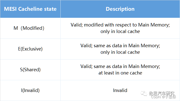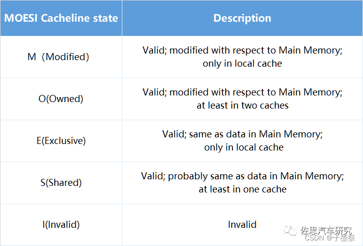 一致性总线通过snoop filter来记录各个cache中的cache line状态,在总线的视角中,cache中每个cache line的状态都在掌握之中。而常用的cache一致性协议包含两种:MESI和MOESI。