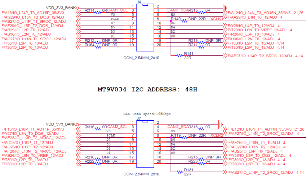 开发板的J4、J7是20pin PMOD接口,可用于接双目摄像头,引脚定义如下图: