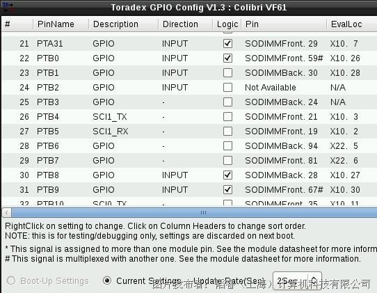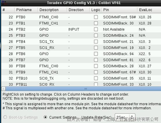 下面两个截图分别是更改前和更改后使用Toradex提供的GPIOConfig工具对PWM对应管脚进行查看,可以看到由原来的PWM属性变成了GPIO,修改成功后则可以按照这里的说明直接调用GPIO使用。