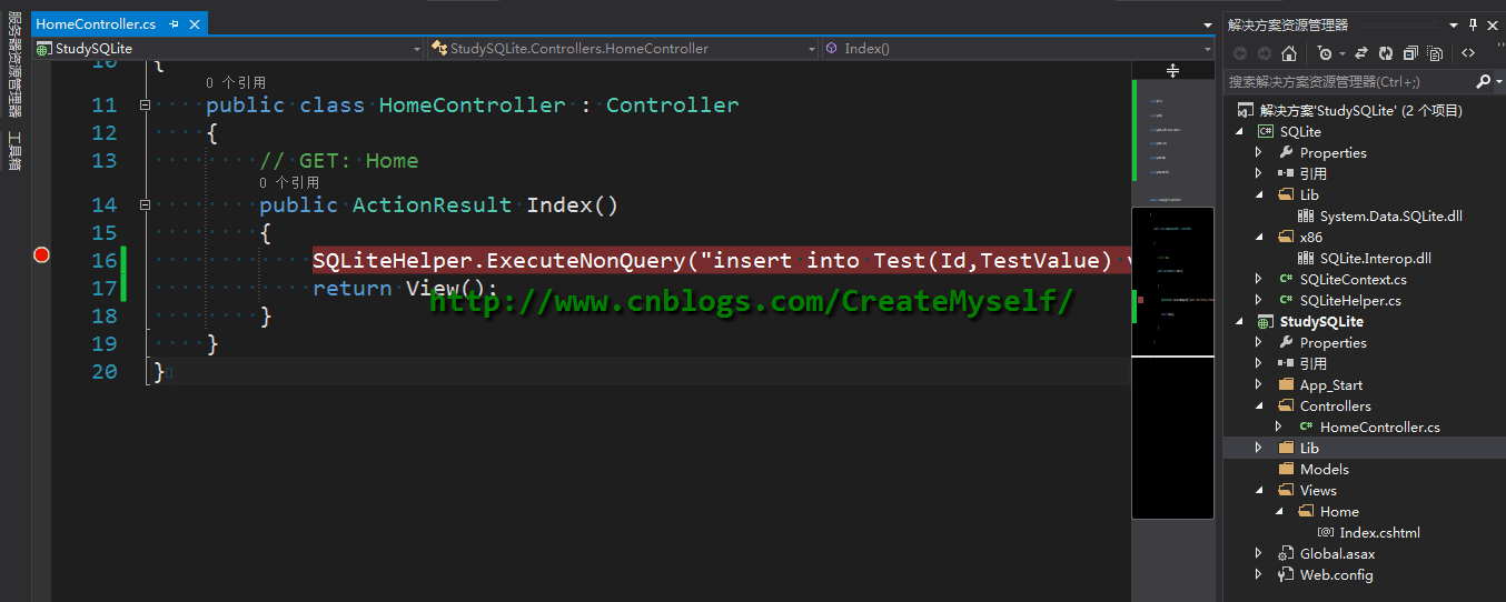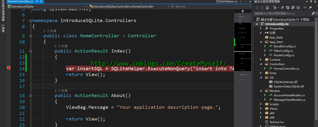 (1)关于建立非空MVC项目在里面建立SQLite你爱怎么玩就怎么玩,不过是学习而已,猜测大概是MVC内置做了处理。