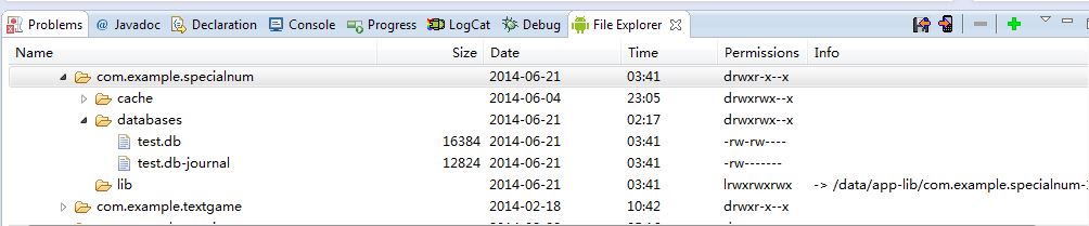 但是,在FileExplorer中还是能找到我所创建的test.db数据库文件。