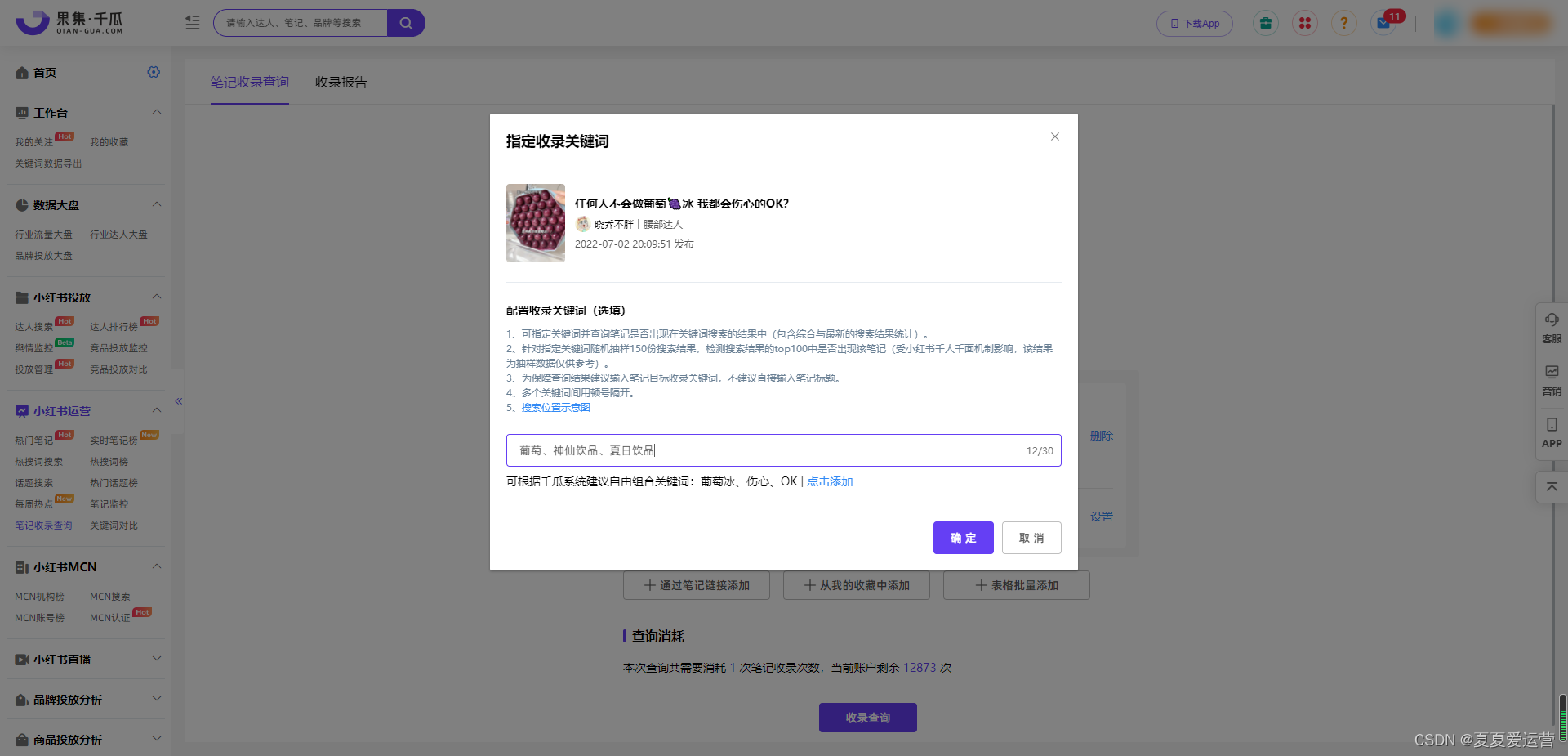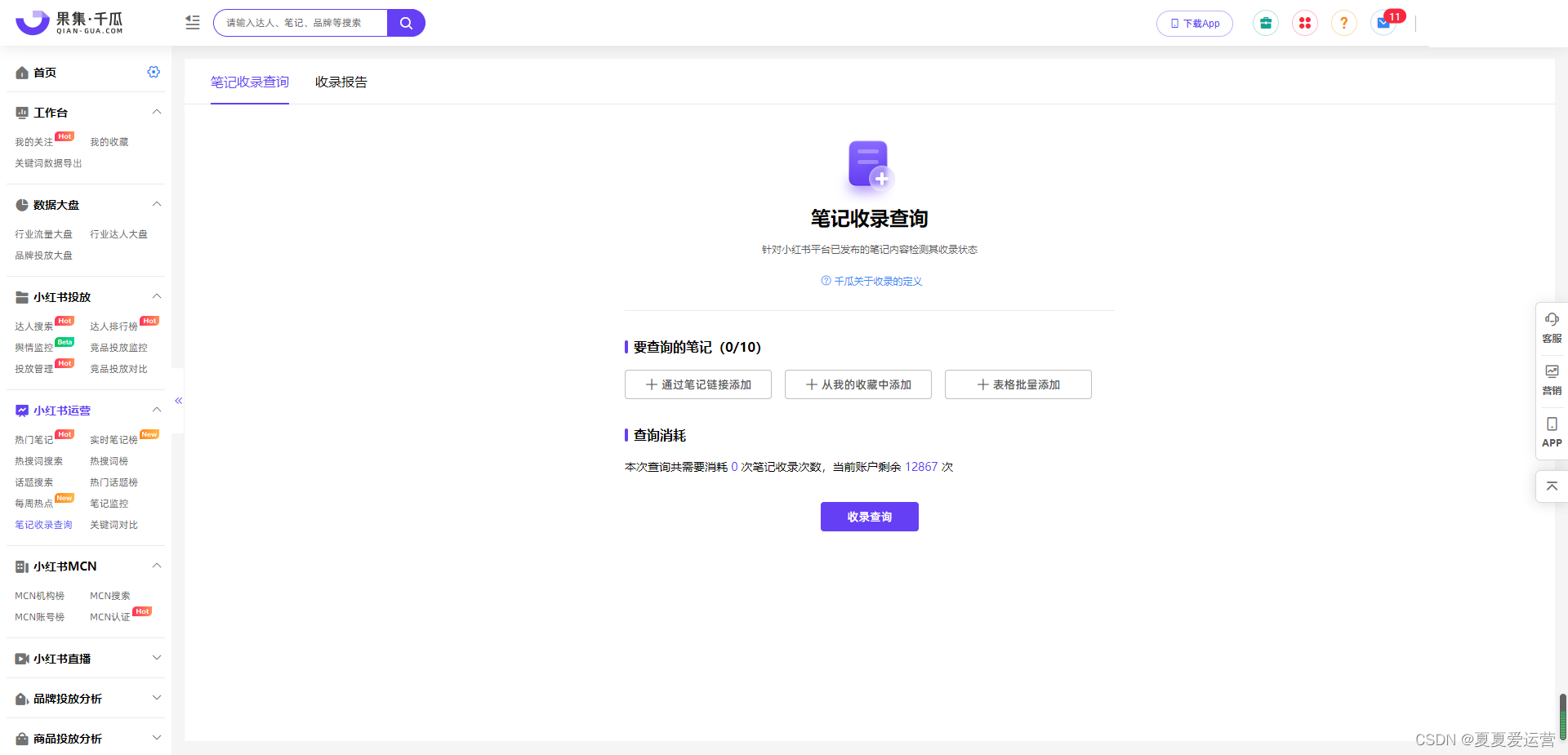 二是利用小红书数据查询工具,可采用千瓜数据的笔记收录查询功能,一键添加笔记链接或添加表格批量,进行收录检测。