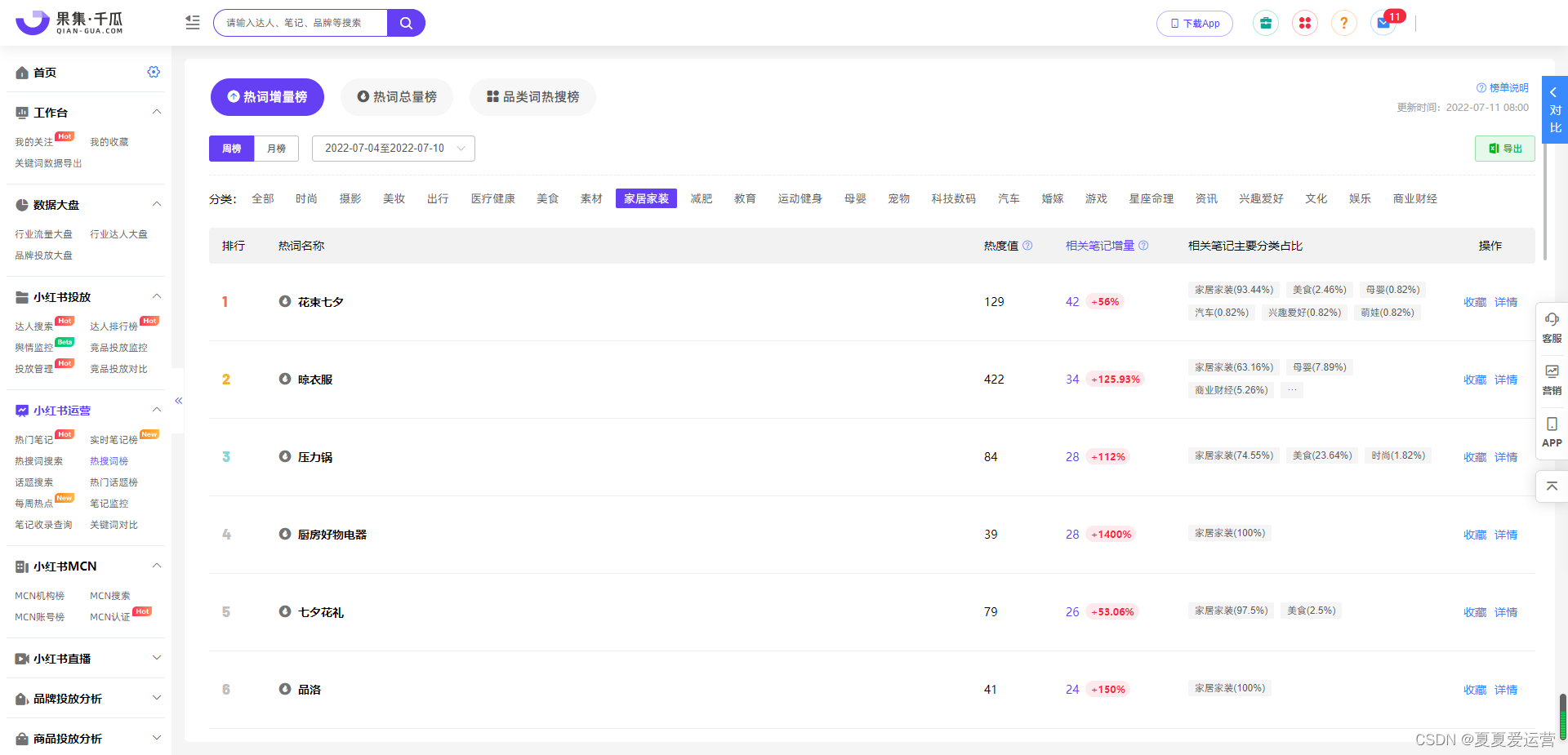 内容类型如果属于小红书平台扶持类型,收录概率也会提高。可以通过千瓜数据的热门话题榜,查看流量扶持榜,选择官方发布的话题,获得小红书官方流量扶持。