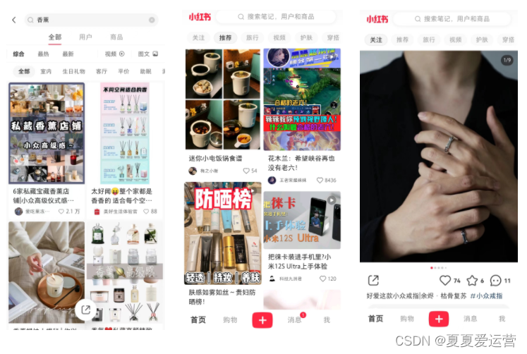 小红书的流量通道主要有3个:搜索页、推荐/发现页、关注页。未被收录的笔记流量主要源于推荐/发现页、关注页,而被收录的笔记,能获得包括搜索页在内的3个通道的流量,有机会展示给更多用户,因此笔记收录与搜索流量相关。