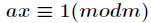 除法求模不能类似乘法,对于(A/B)mod C,直接(A mod C)/(B mod C)是错误的,找到B的逆元b(b=B^-1);求出(A*b)modC即可;