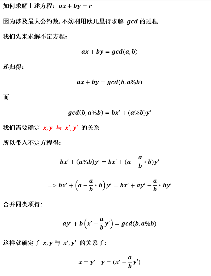 若此方程有解,那么 c=k*gcd(a,b) ,k 为任意正整数