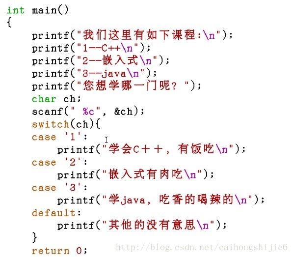 2)case子句起相当于一个入口。程序从某一个case进去以后,会执行该case子句及其下面的所有子句(在没有break语句的情况下)