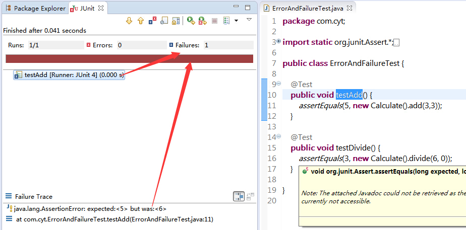 1.Failure一般由单元测试使用的断言方法判断失败所引起的,这经表示 测试点发现了问题 ,就是说程序输出的结果和我们预期的不一样。