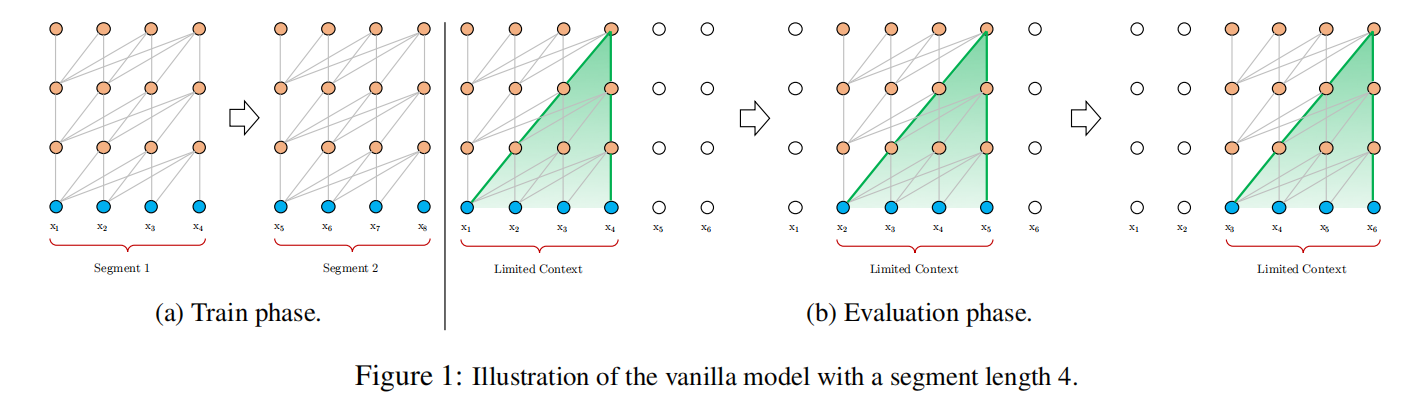 - 现如今的以Transformer为主的语言模型不能很好地处理超过预定义长度的文本。即模型不能捕获任何超过预定义上下文长度的长期依赖