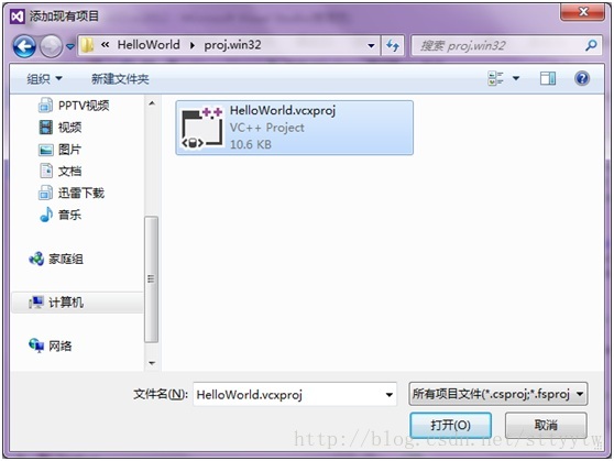 然后在这个目录(cocos2d-x-2.2.1projectsHelloWorldproj.win32)下找到HelloWorld.vcxproj