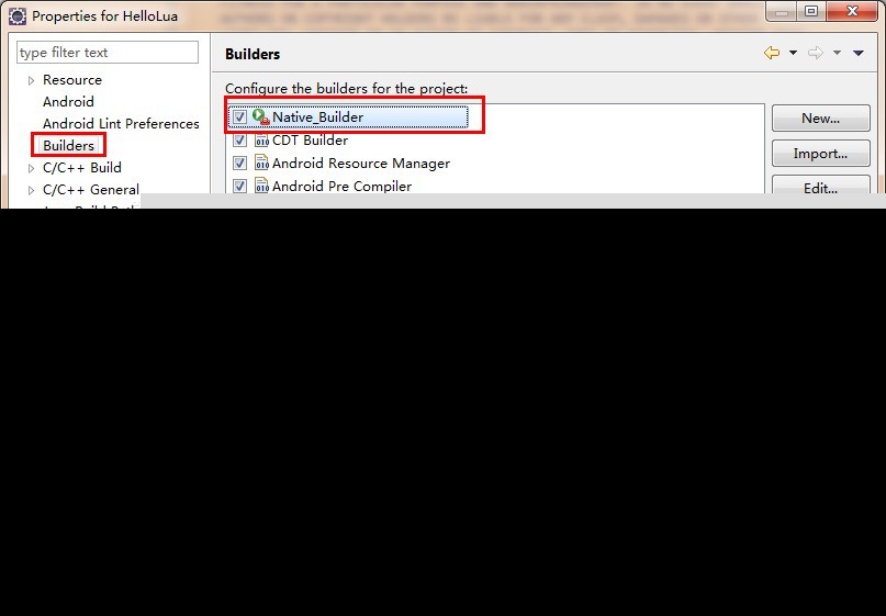 选择OK,选中Native_Builder,并将其调到最上面