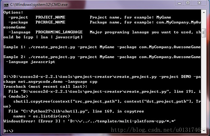 cocos2d-x 2.2.2 的create_project.py报错 WindowsError:[Error 3]