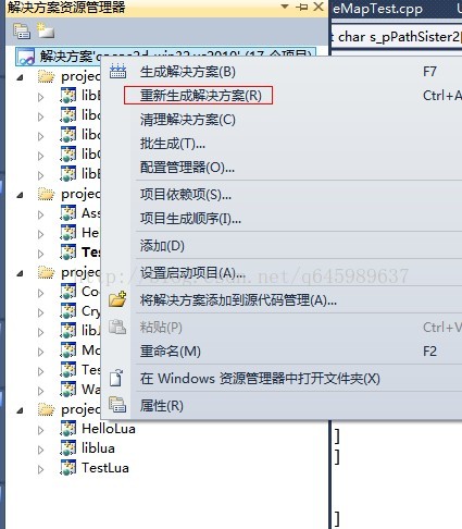 2. 解压cocos2d-2.1rc0-x-2.1.2-hotfix目录 打开 cocos2d-win32.vc2010.sln 并且编译解决方案