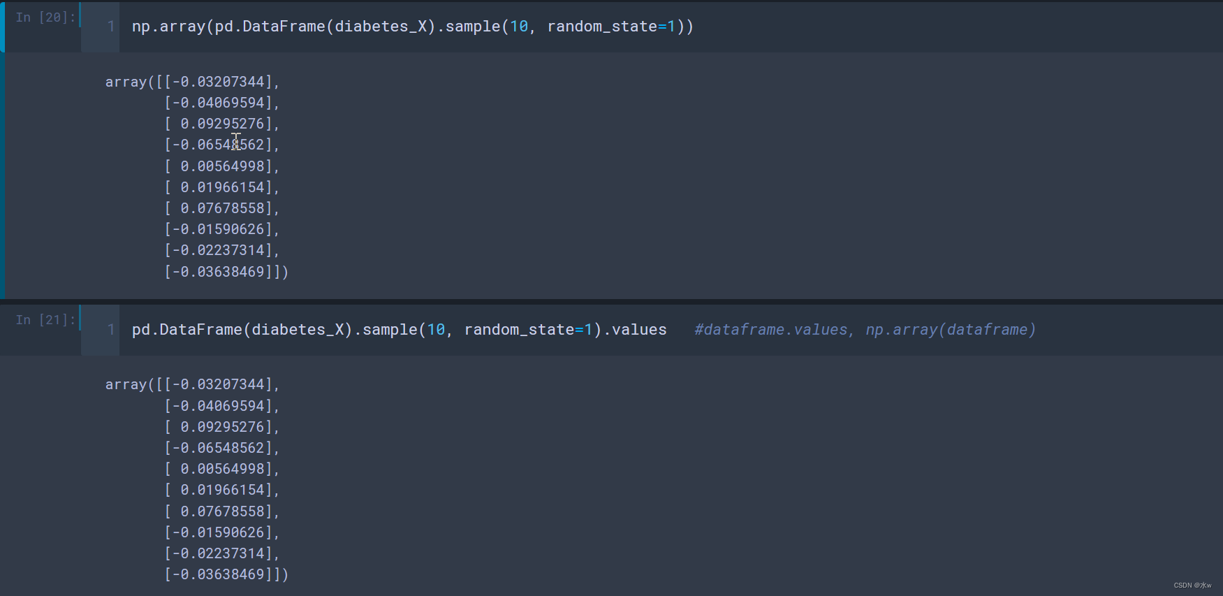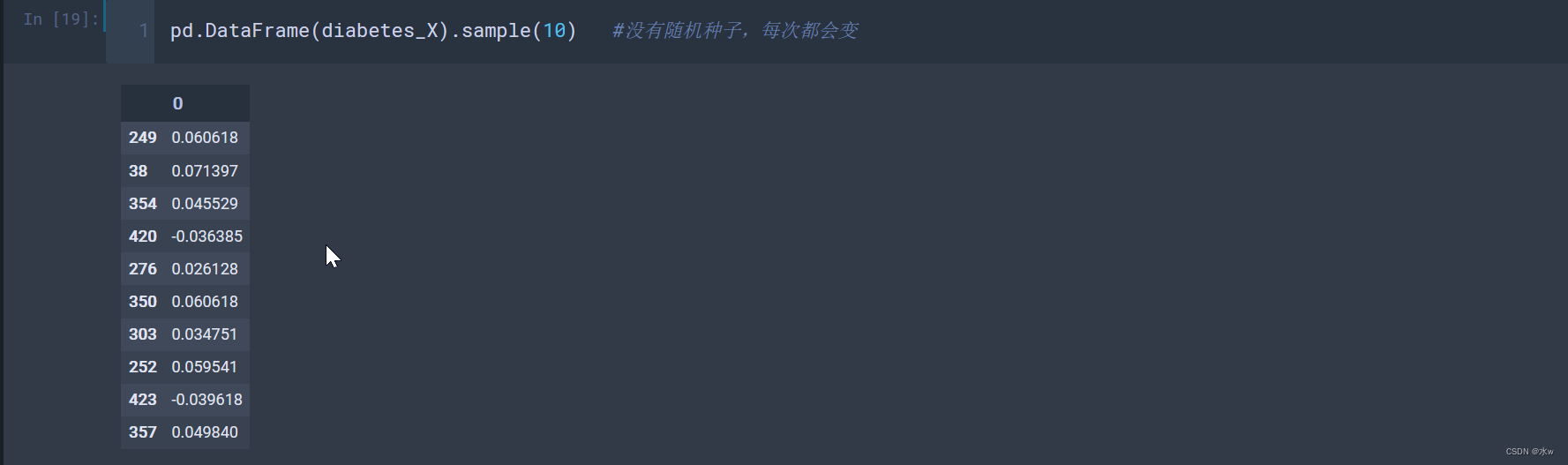 - np.array(pd.DataFrame(diabetes_X).sample(10, random_state=1))