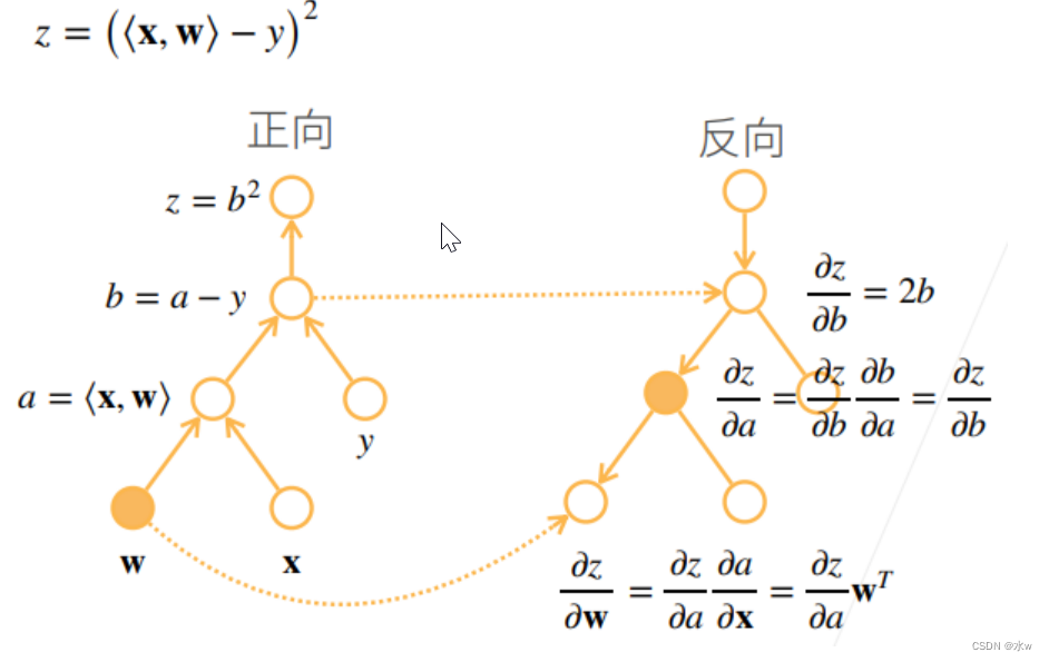 ④ 通过调用反向传播函数来自动计算y关于x每个分量的梯度。