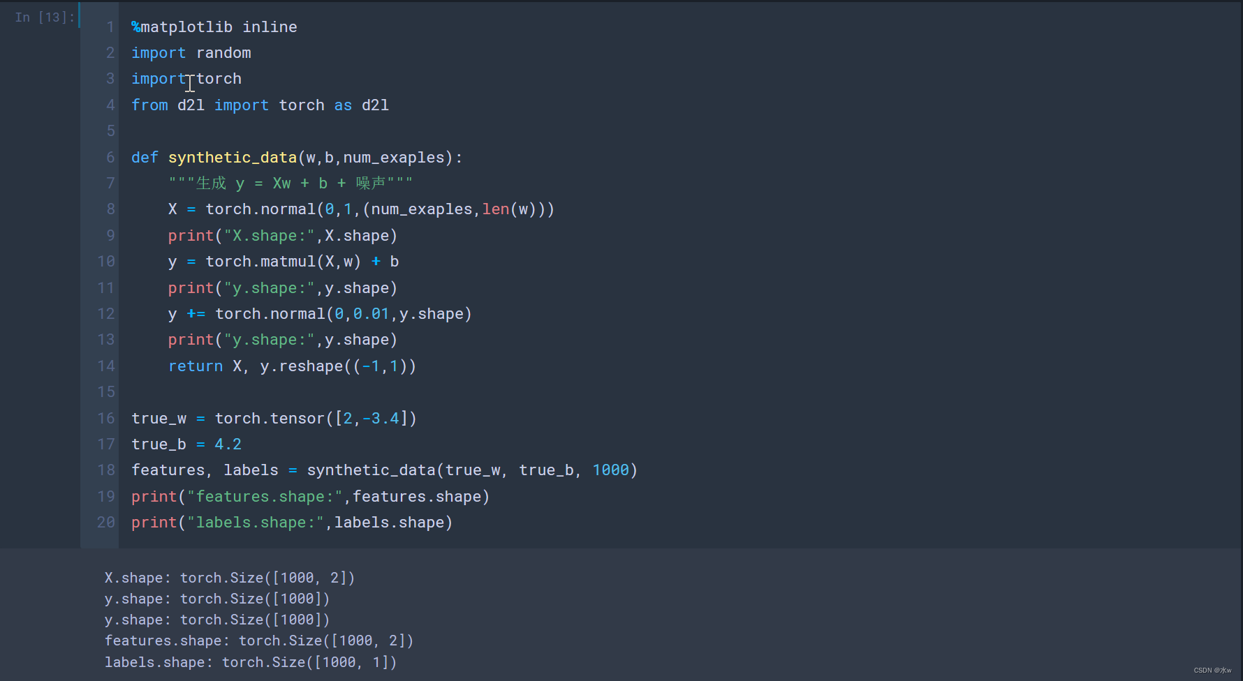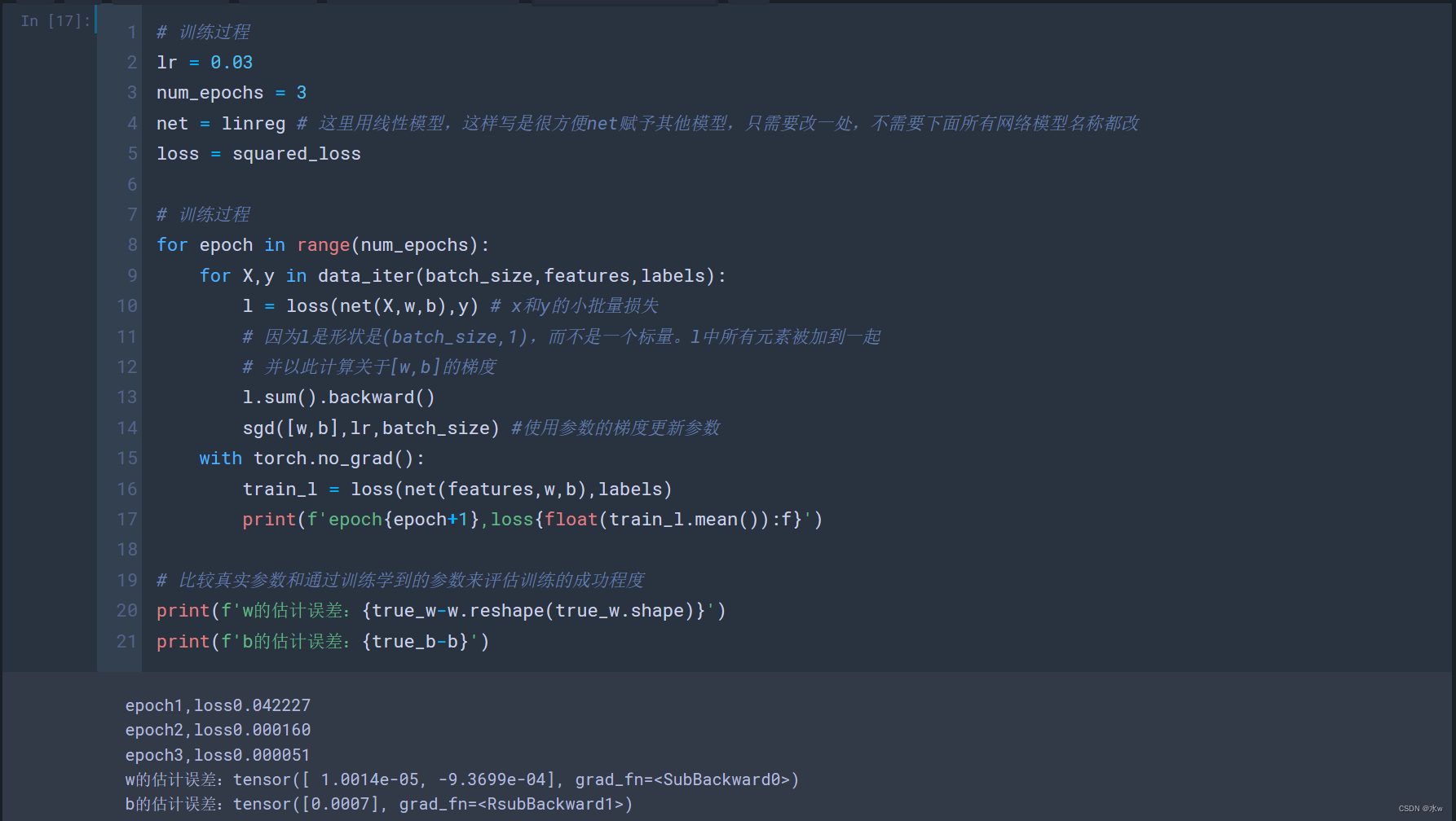 print(f'w的估计误差:{true_w-w.reshape(true_w.shape)}')