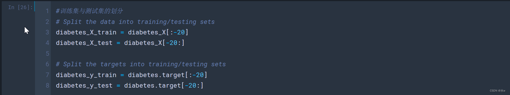 后20行数据作为测试集,后20行以外的数据都作为训练集。