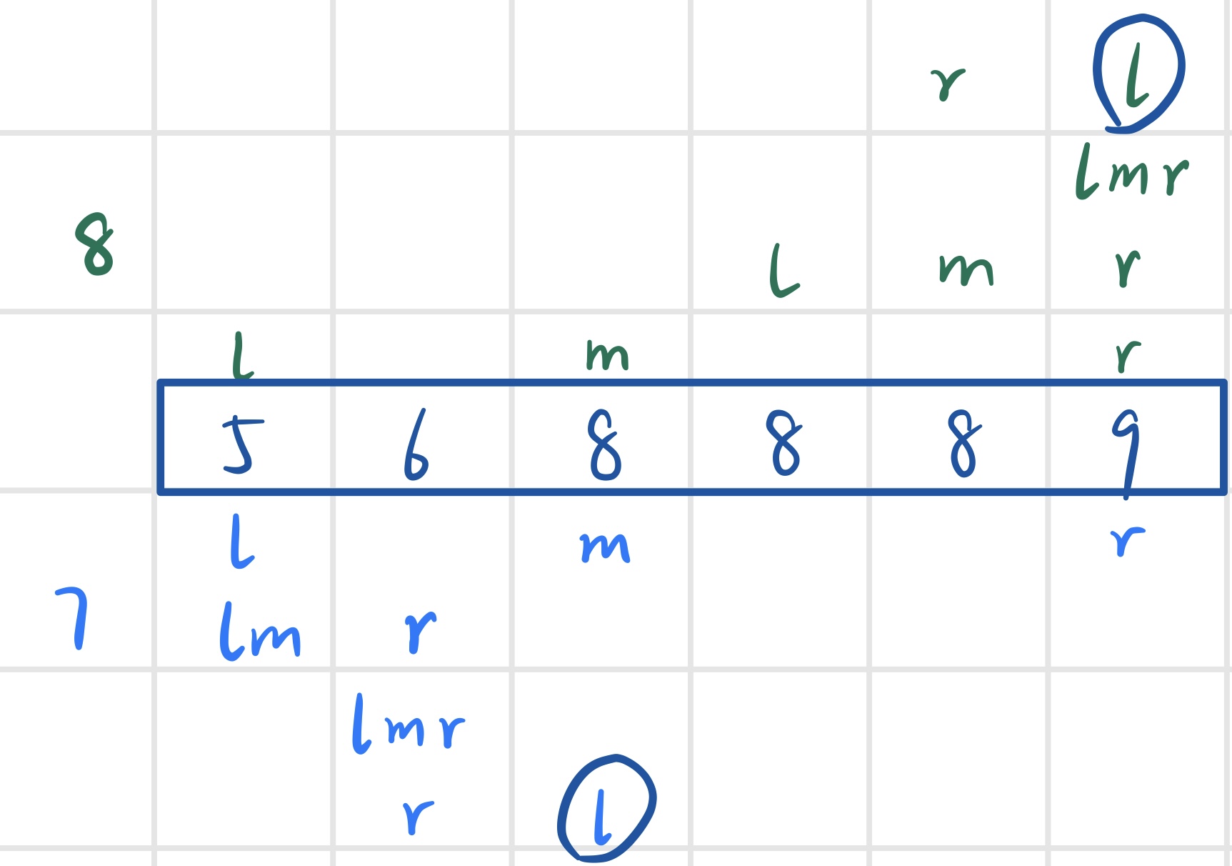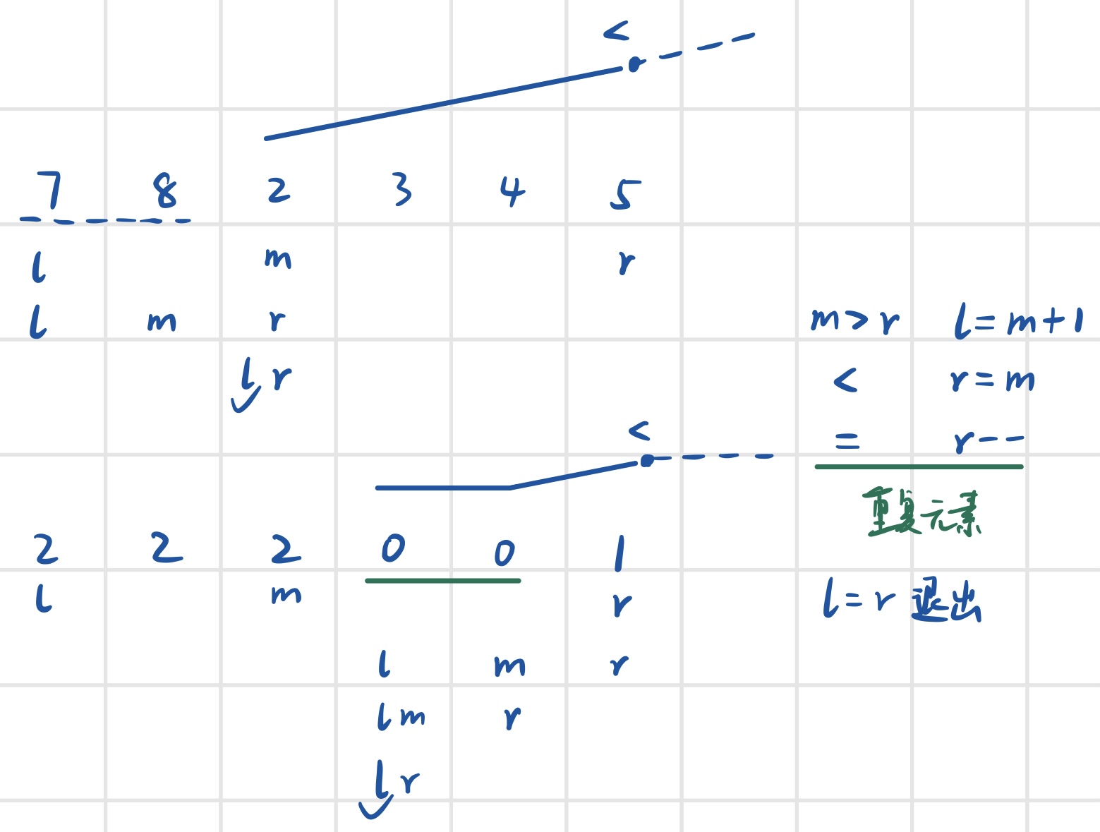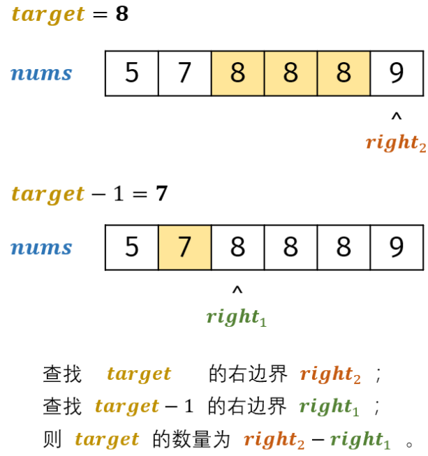 难点:数字区间 找左右边界的两轮二分查找代码冗余-封装在一个binarySearch()里
