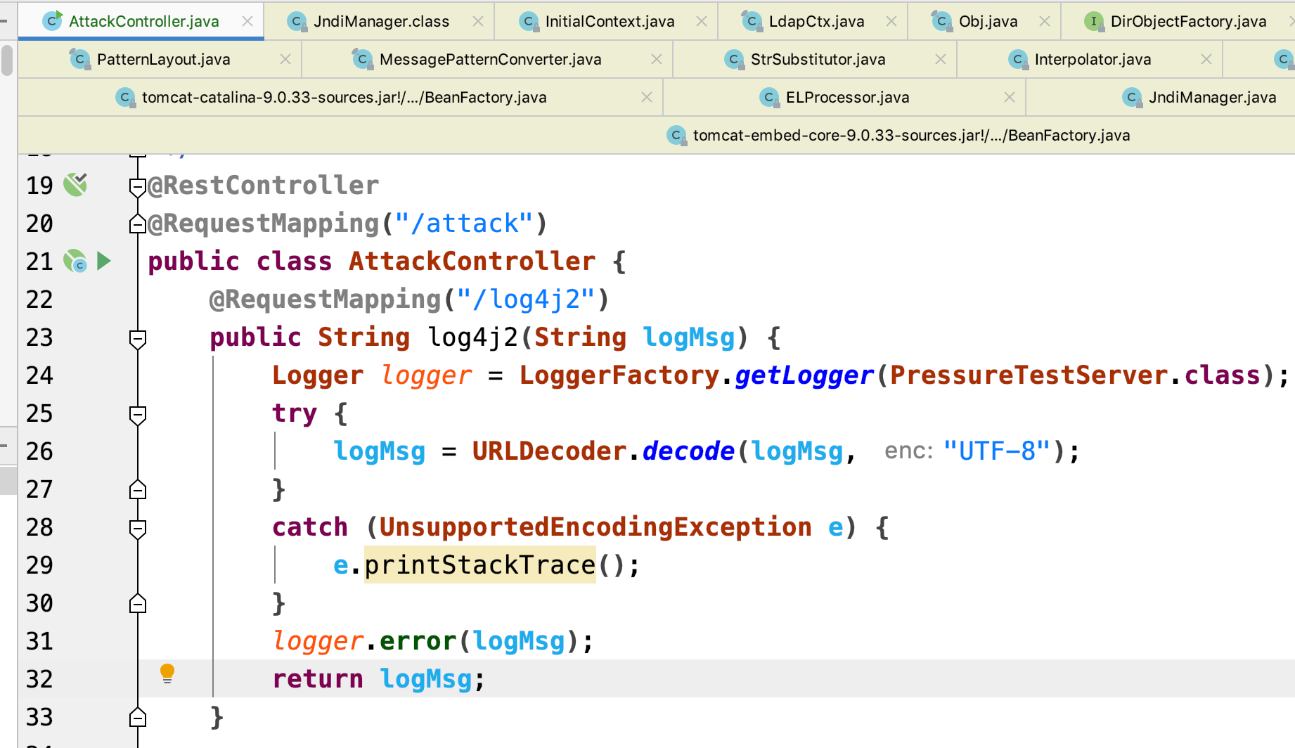 这个服务比较简单,只需部署一个简单的web工程,然后要引入log4j2(2.15.0以下版本)打印日志。然后编写一个简单的Controller将接口传入的参数通过日志打印出来即可。