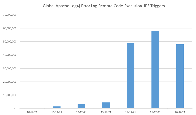图1:自12月10日以来检测到的Apache.Log4j.Error.Log.Remote.Code.Execution的攻击数量。