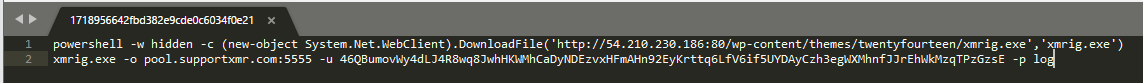 hxxp://54[.]210.230.186/wp-content/themes/twentyfourteen/xmrig.exe