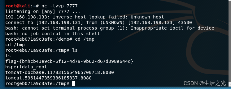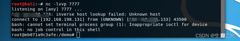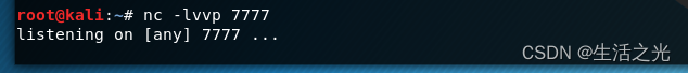 在打开一个kali 终端 使用nc -lvvp 端口号 进行监听这个7777端口返回来的数据