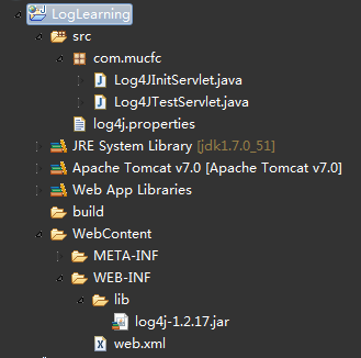 1.新建一个JAva工程,导入包log4j-1.2.17.jar,整个工程最终目录如下