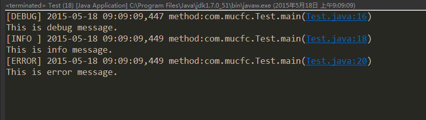 log4j.appender.stdout.layout.ConversionPattern = [%-5p] %d{yyyy-MM-dd HH:mm:ss,SSS} method:%l%n%m%n