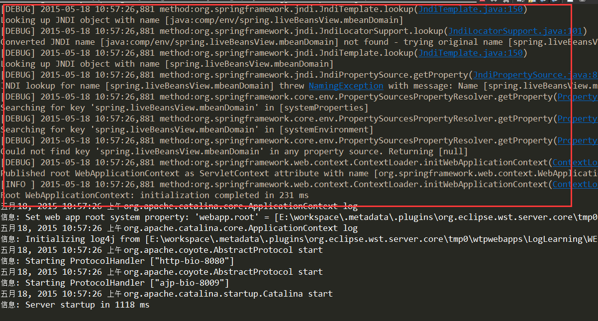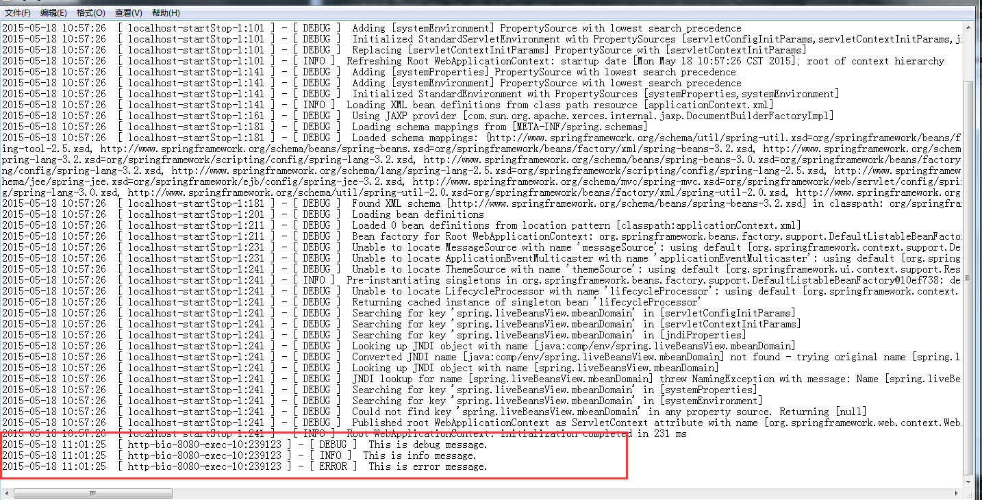 (3)这样日志就跟随Spring窗口启动而启动了