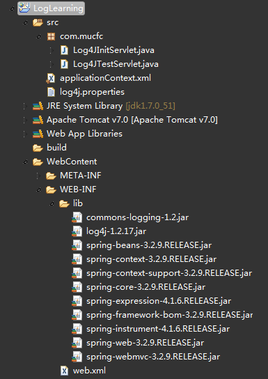 这里要实现web项目中利用Spring来使用Log4j