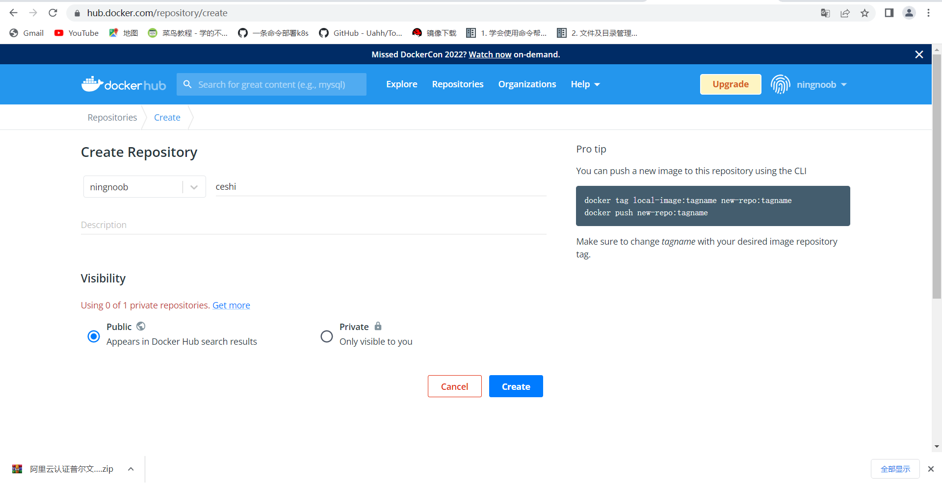 [root@localhost gg]# docker push ningnoob/ceshi:v1