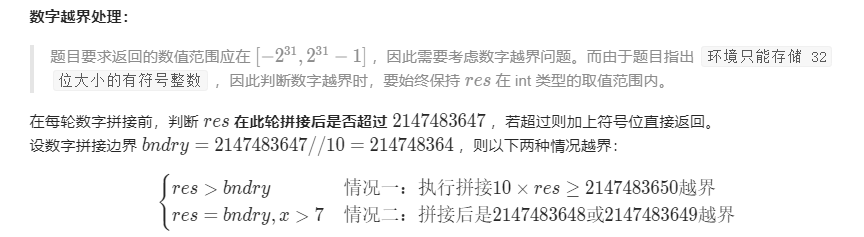 if res > bndry or res == bndry and c > '7': return int_max if sign == 1 else int_min # 数字越界处理